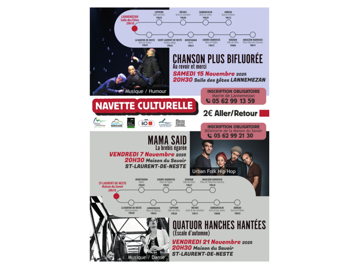 Navette culturelle intercommunautaire : 3 soirées Musique/Danse/Humour en Novembre