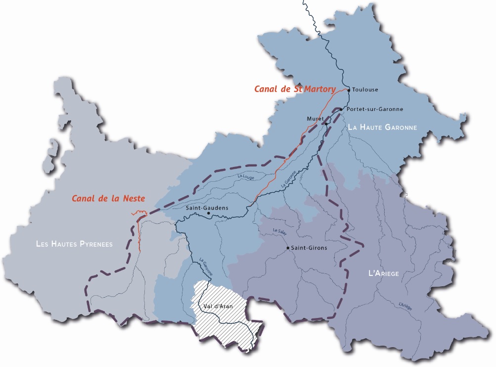 Le Conseil départemental de la Haute-Garonne, en partenariat avec l'Etat, la région Occitanie, les départements de l'Ariège, des Hautes-Pyrénées et du Gers ainsi que l'Agence de l'Eau Adour-Garonne, s'intéresse de manière active et participative à la ressource en eau sur ce périmètre géographique de 5828 km² où vivent 230 000 habitants. Cette démarche s’effectue également en association avec la Métropole de Toulouse et le Val d’Aran.