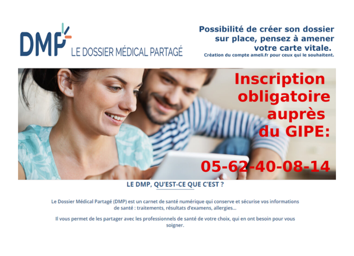 Le GIPE-MSAP de Saint-Lary et la CPAM des Hautes-Pyrénées vous proposent dans le cadre des ateliers numériques, une information sur le Dossier Médical Partagé avec possibilité pour ceux qui le souhaitent de le créer.