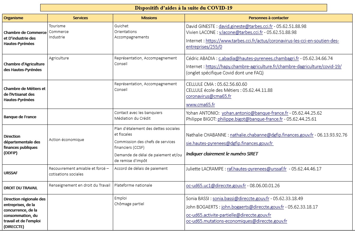 Coordonnées des différents interlocuteurs pour le Département des Hautes-Pyrénées :