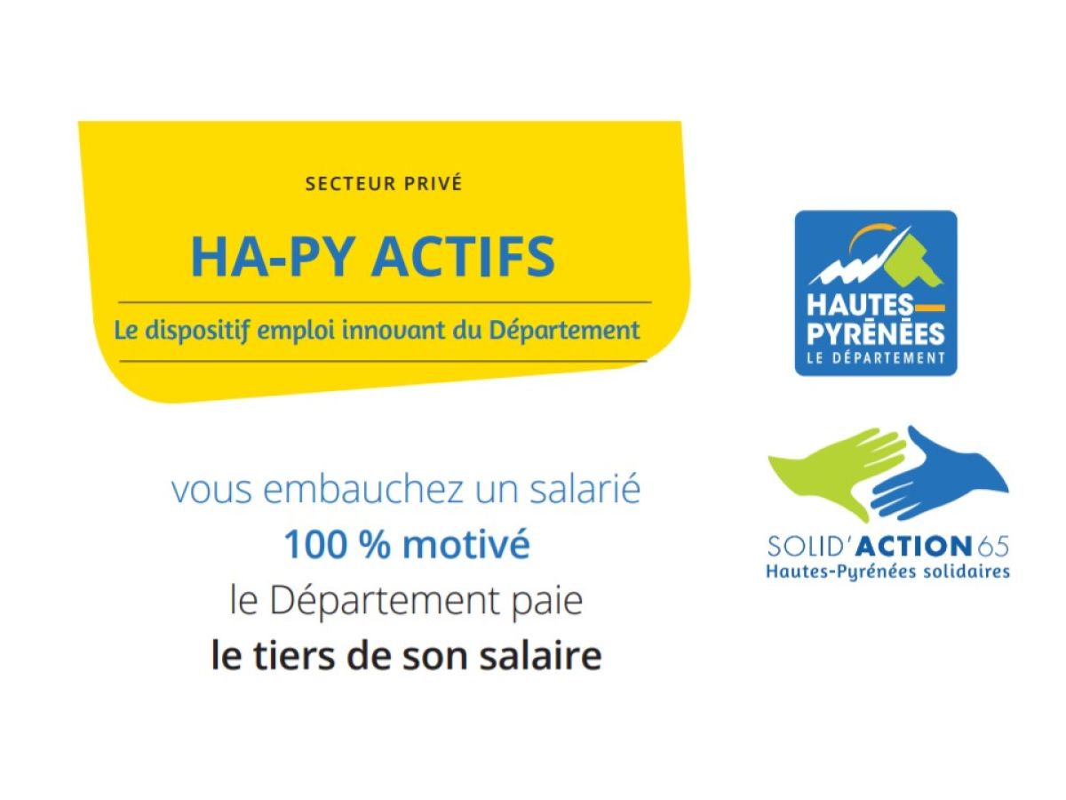 "Ha-Py Actifs" est un dispositif innovant porté par le Département des Hautes-Pyrénées qui vise à faciliter l’accès à l’emploi des allocataires du RSA tout en soutenant les projets des employeurs, qu’ils soient privés, publics ou associatifs.