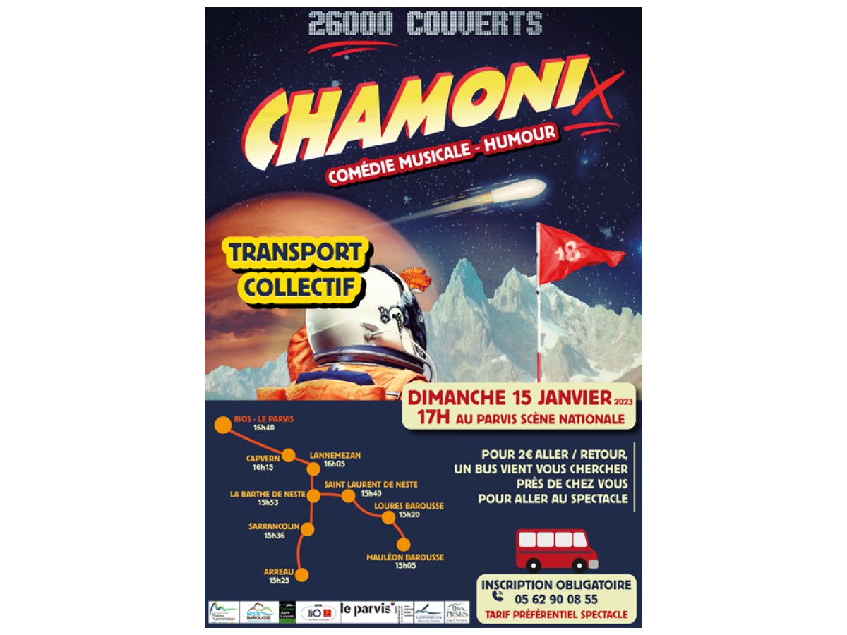 - Dimanche 15 janvier 2023 – Chamonix – Comédie musicale et humour – 17h – Parvis d’Ibos ;