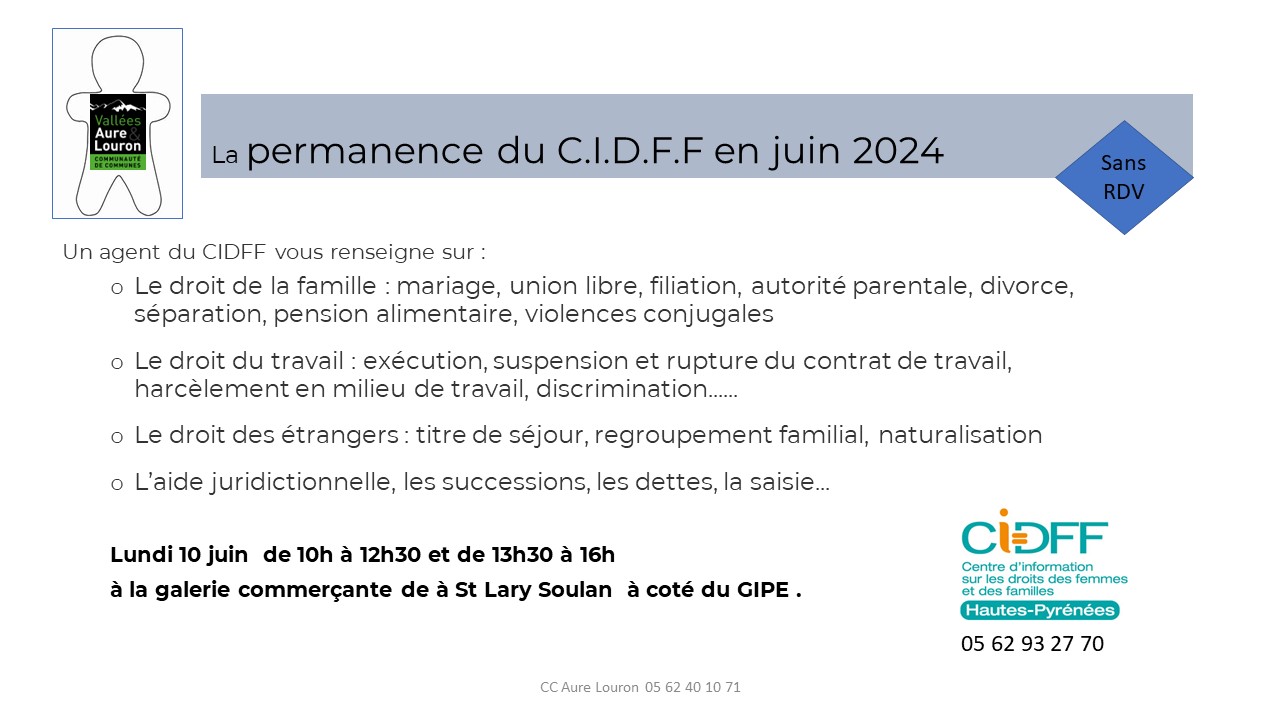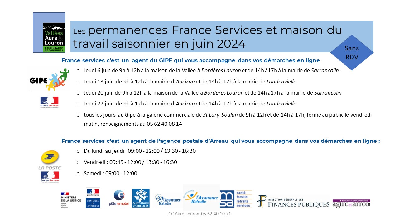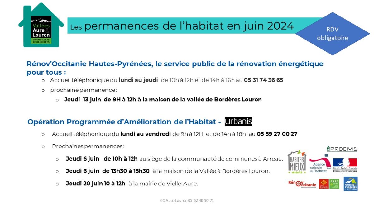 Les permanences en Juin 2024 : Renov'Occitanie, OPAH, France Services, Maison du travail saisonnier, CIDDF, Mission Locale