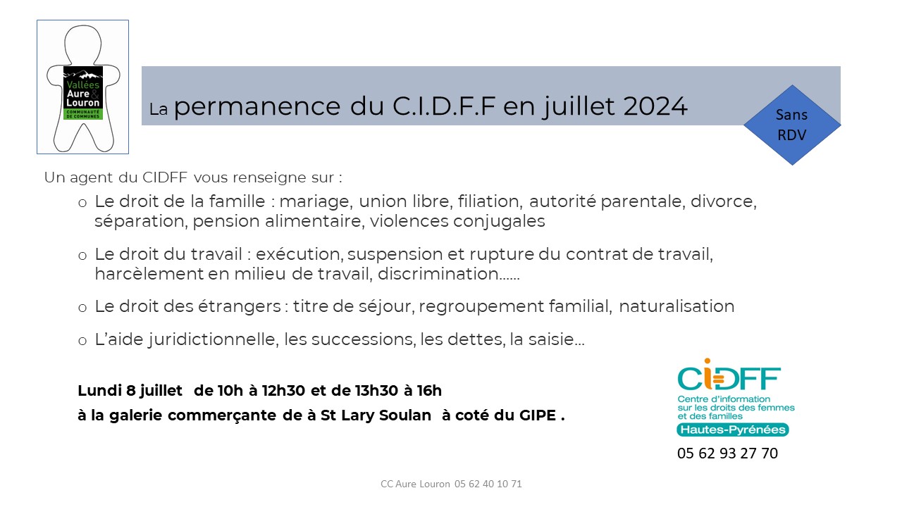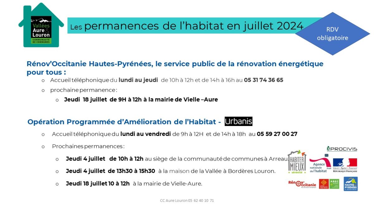 Les permanences en Juillet 2024 : Renov'Occitanie, OPAH, France Services, Maison du travail saisonnier, CIDDF, Mission Locale