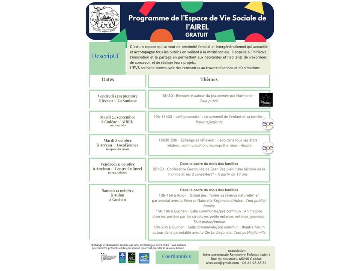 Espace de vie sociale AIREL : programme Septembre-Octobre 2024