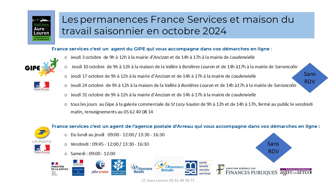 Les permanences en Octobre 2024 : Renov'Occitanie, OPAH, France Services, Maison du travail saisonnier, CIDDF, Mission Locale