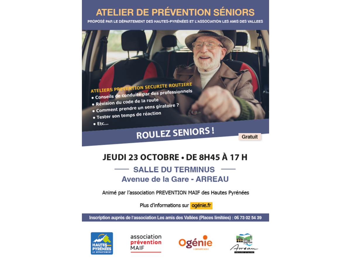 Atelier de prévention sécurité routière à destination des seniors le jeudi 23 octobre à Arreau